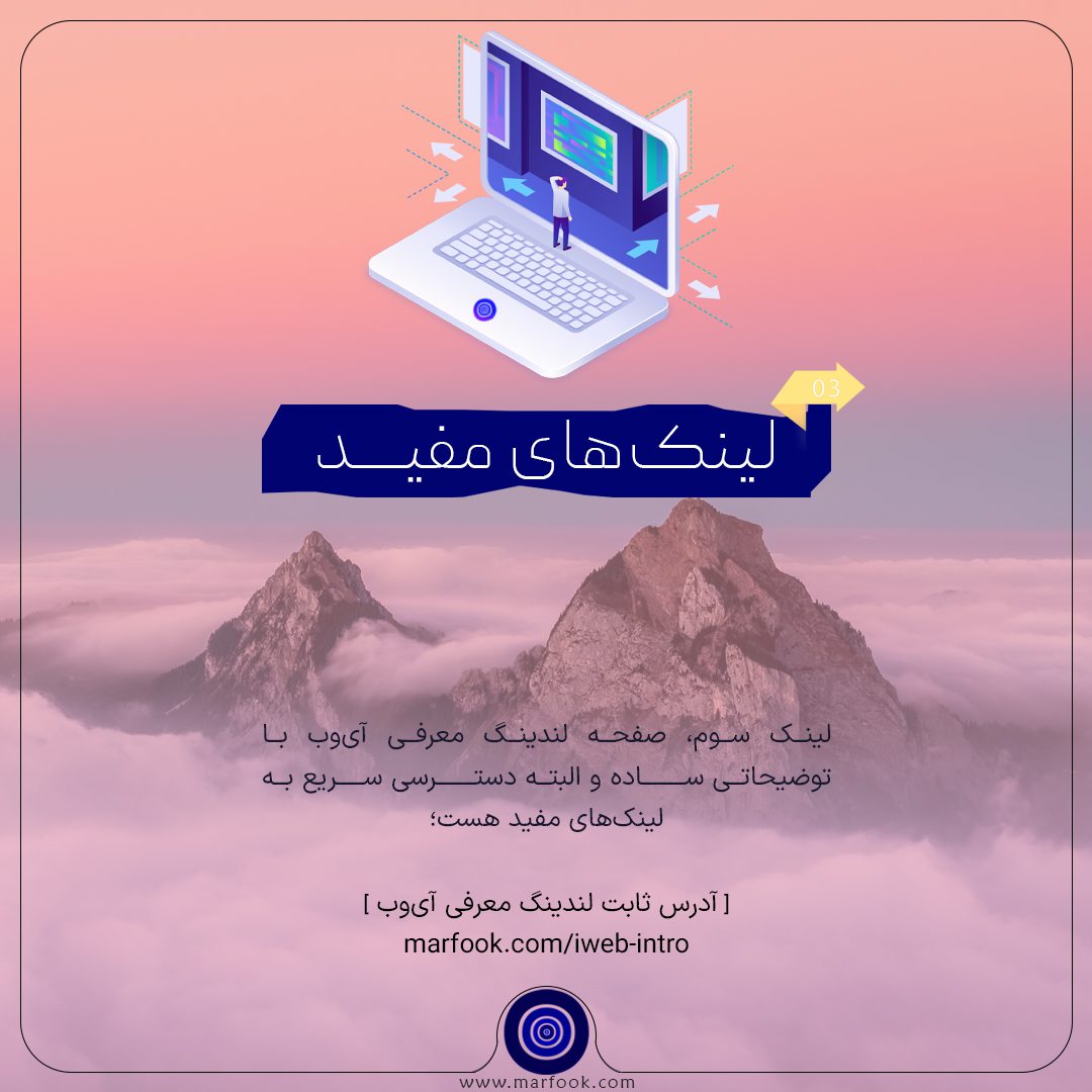 لینک سوم، صفحه لندینگ معرفی آی وب با توضیحاتی ساده و البته دسترسی سریع به لینکهای مفید میباشد.